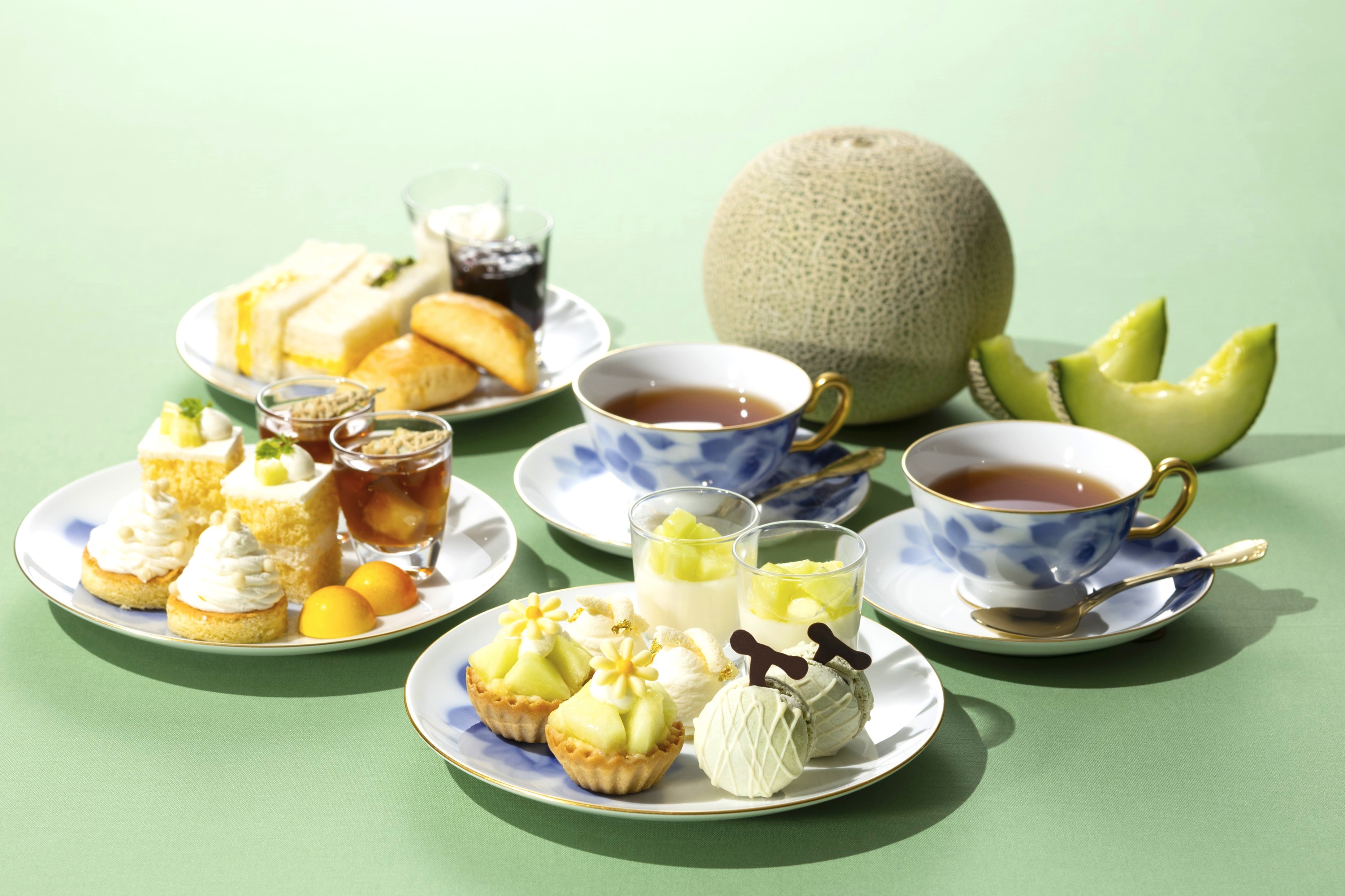 ・メロン杏仁豆腐 ・メロンタルト ・メロンのヴァシュラン ・メロンマカロン ・メロンショートケーキ ・サンドウィッチ 他