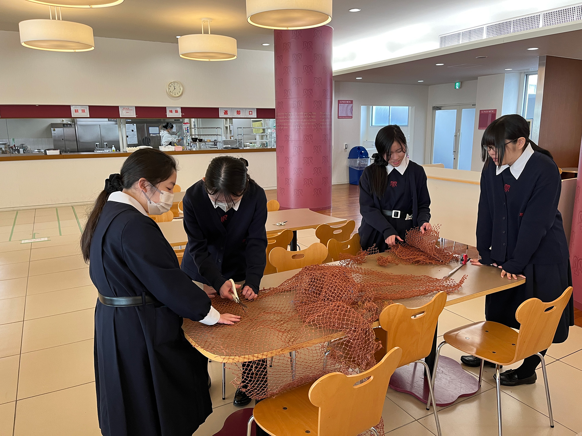 身近な海洋プラスチックごみである地元明石の廃棄漁網を使用して小物入れやボトルホルダーを作るワークショップや、漁網を使った魚釣りゲーム、漁網絡まり解決ゲームを実施する他、“海ラボコーナー”では海洋プラスチックごみ、海洋酸性化、気候変動といった海の環境問題を松蔭高校 Blue Earth Projectの生徒がスライドやフリップを用いて解説いたします。