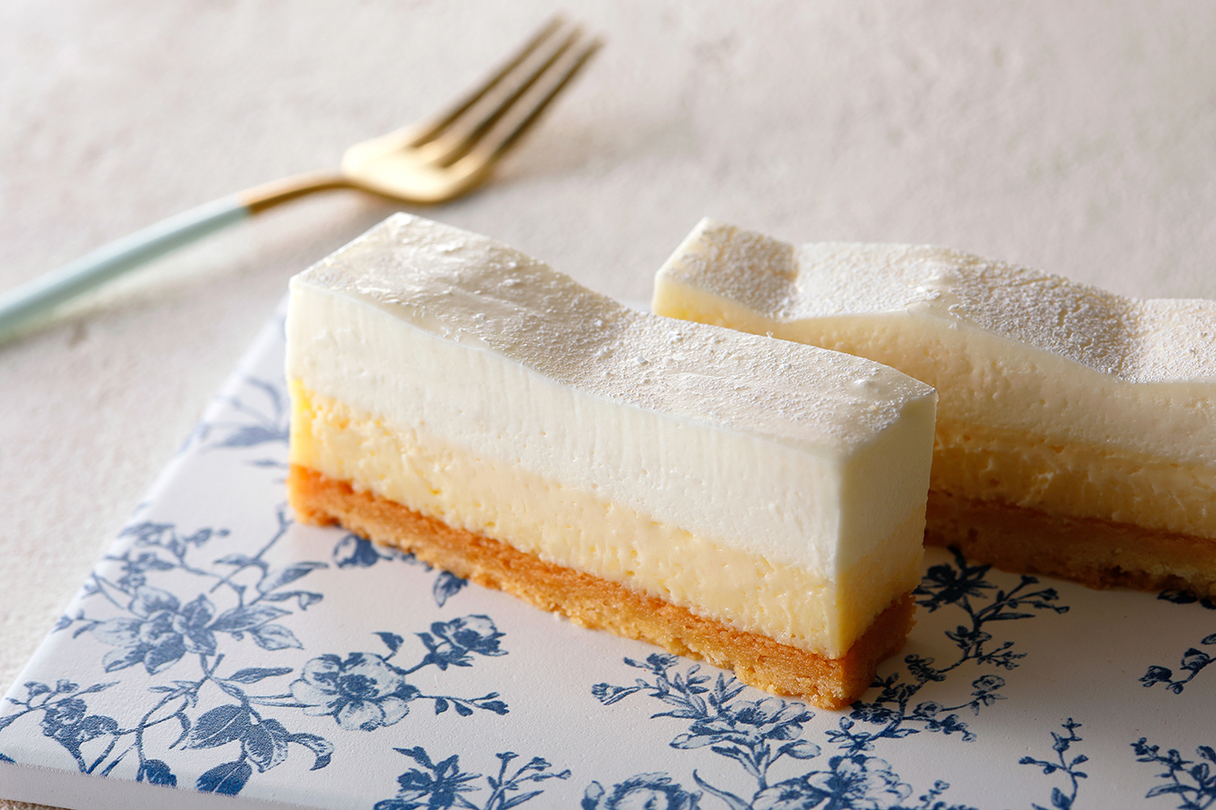 口どけが良く、爽やかな酸味と上品な甘さが特徴のレアチーズケーキと、しっかりとしたコクが特徴のベイクドチーズケーキの二重奏をお愉しみください。