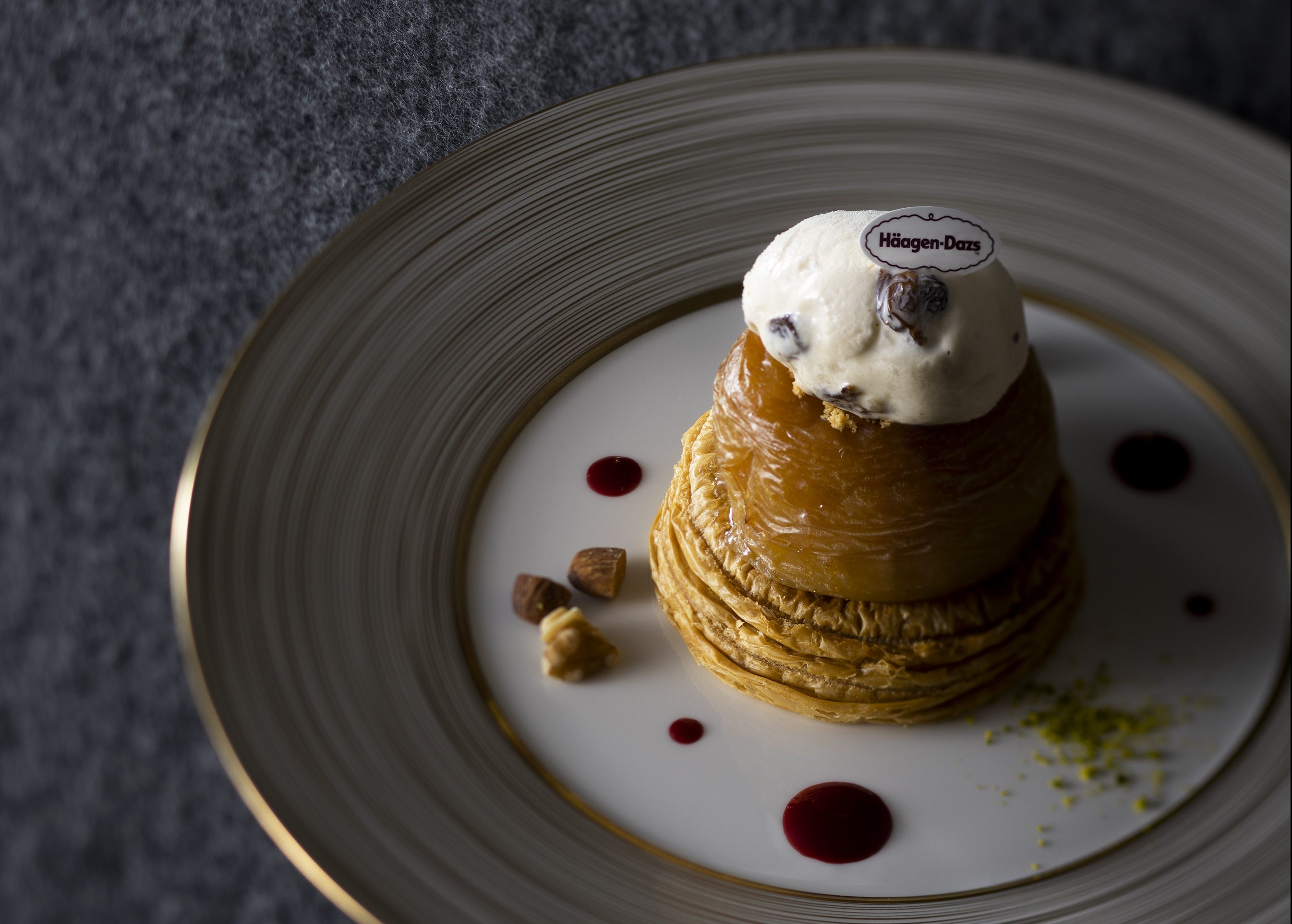 その上にハーゲンダッツのラムレーズンアイスクリームをのせました。
