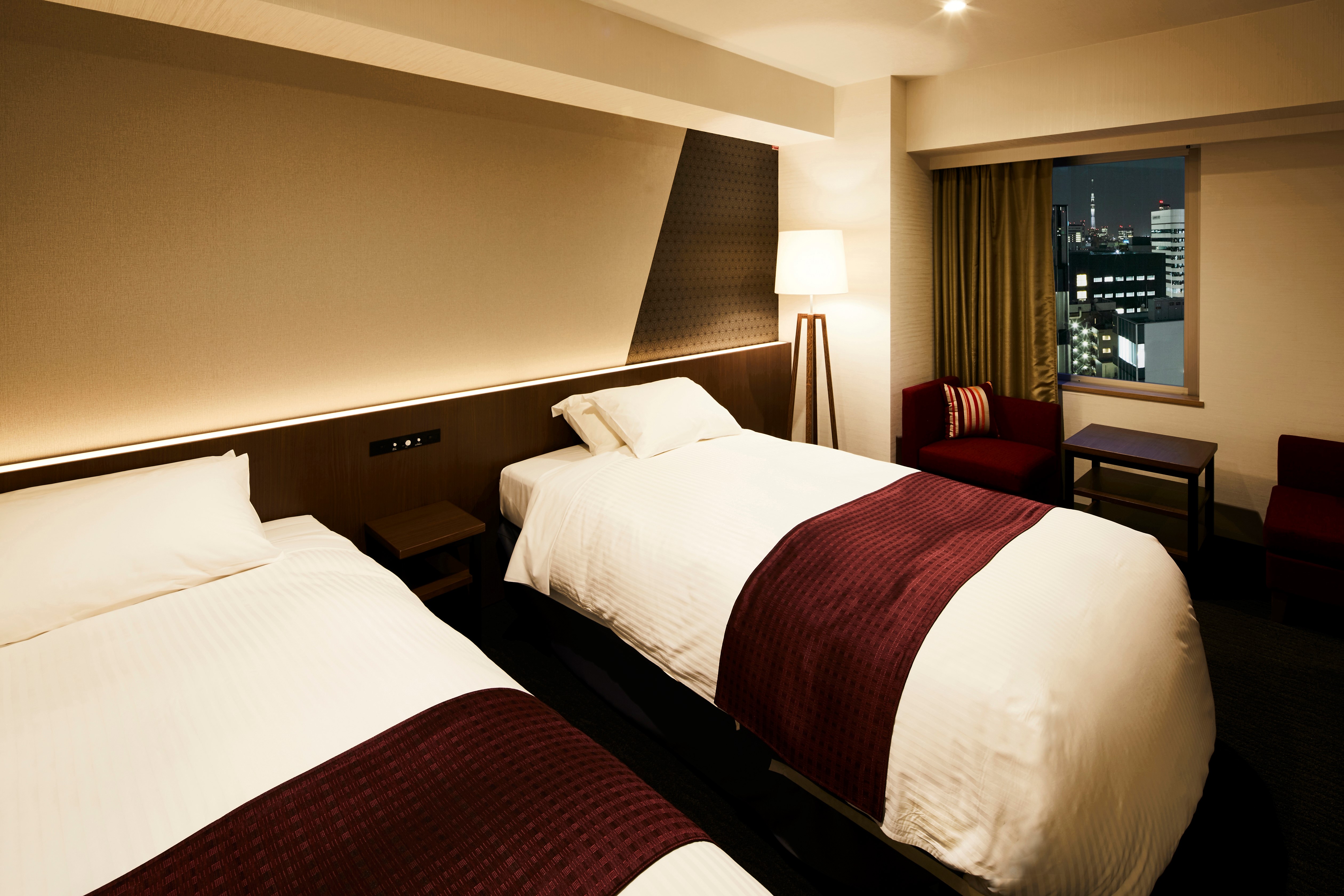 ゆったり28㎡の広々としたお部屋。窓辺のソファでおくつろぎいただけます。