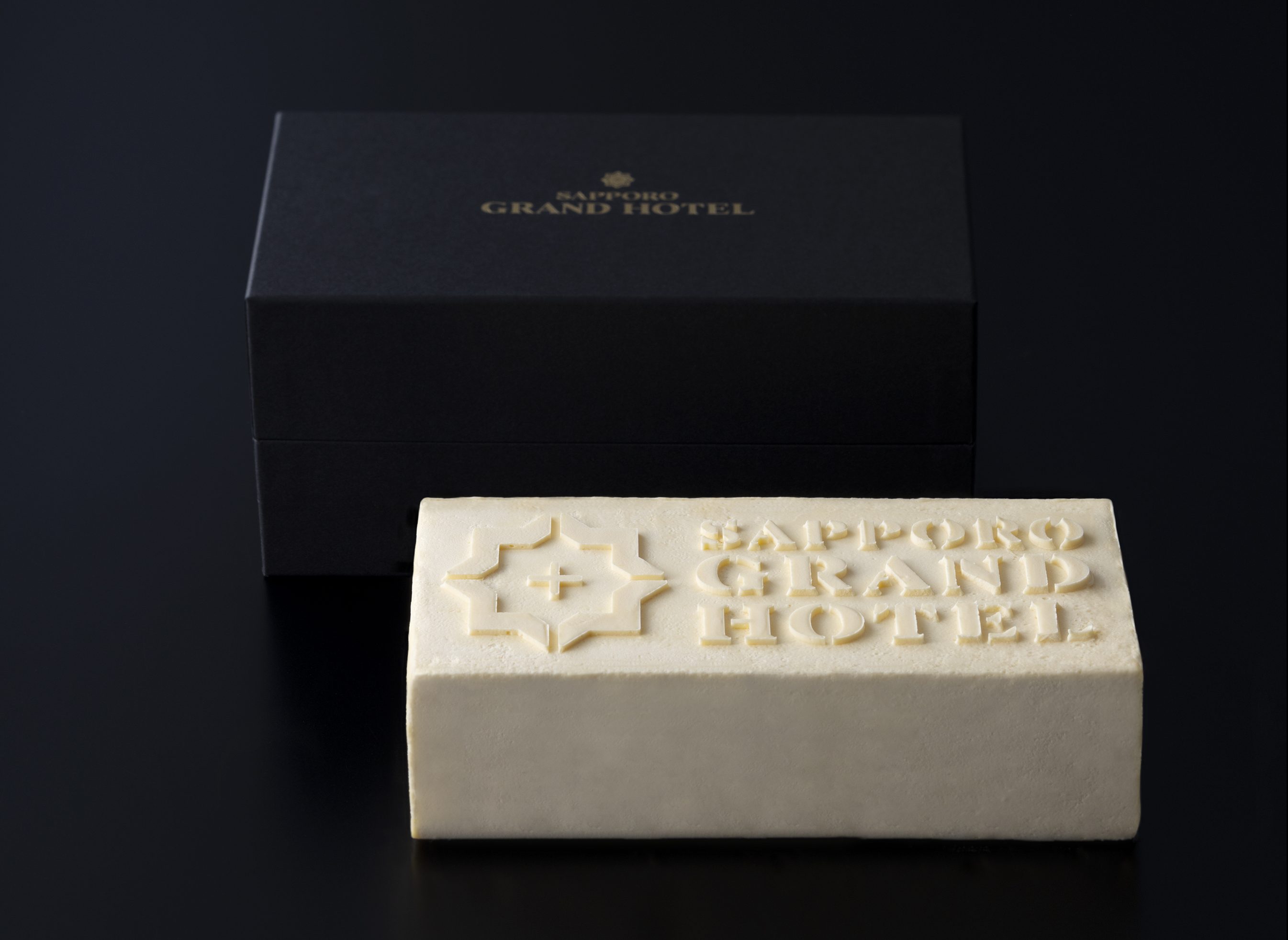 札幌グランドホテルのロゴをかたどった見た目にもこだわり、贈り物にお使いいただけるようシックな黒のボックスに入れてお届けいたします。