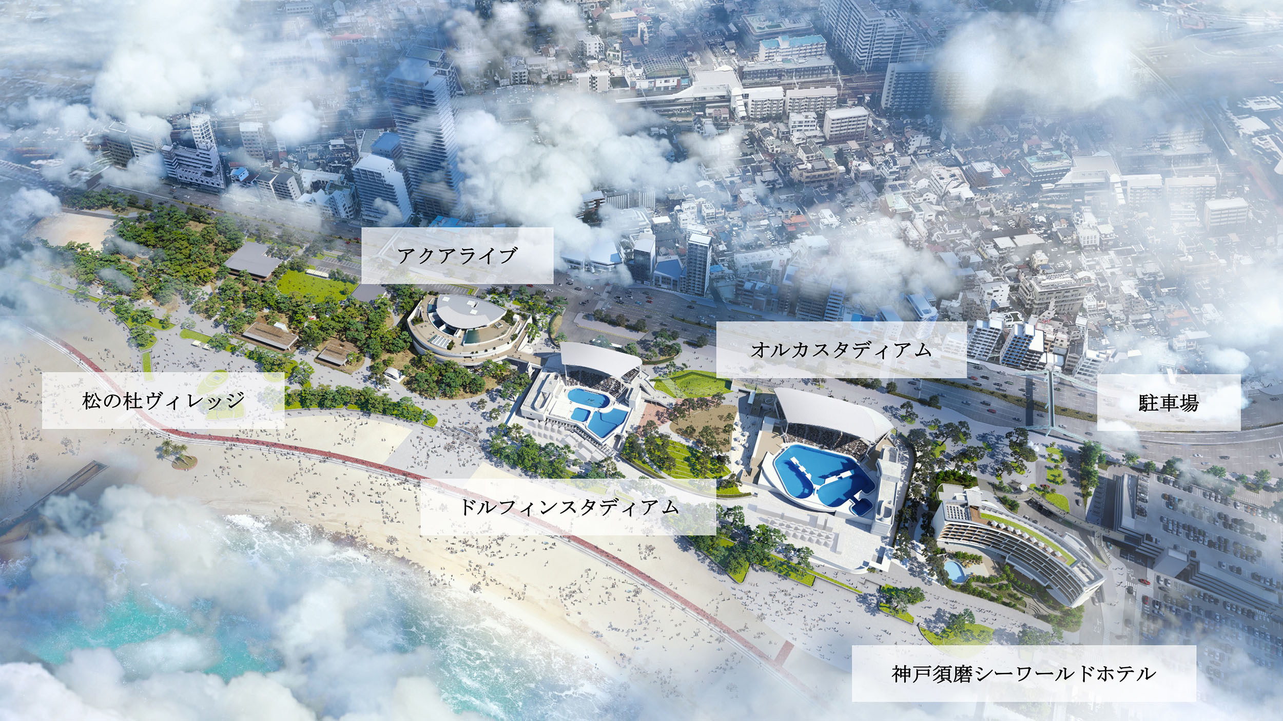 株式会社サンケイビル(本社:東京都千代田区、代表取締役社長:飯島一暢)を代表企業とし、三菱倉庫株式会社(本社:東京都中央区、代表取締役 社長:斉藤秀親)、JR西日本不動産開発株式会社(本社:大阪府大阪市北区、代表取締役社長:藤原嘉人)、株式会社竹中工務店(本社:大阪府大阪市中央区、取締役社長:佐々木正人)、阪神電気鉄道株式会社(本社:大阪府大阪市福島区、代表取締役社長:久須勇介)、芙蓉総合リース株式会社(本社:東京都千代田区、代表取締役社長:織田寛明)、株式会社グランビスタ ホテル&リゾート(本社:東京都千代田区、代表取締役社長:須田貞則)を構成員とする神戸須磨Parks + Resorts共同事業体が事業を推進してまいりました「須磨海浜水族園・海浜公園再整備事業」について、2024年6月1日(土)の神戸須磨シーワールド・神戸須磨シーワールドホテル・須磨海浜公園の全面開業をもって、再整備事業の整備が完了しますことをご報告いたします。