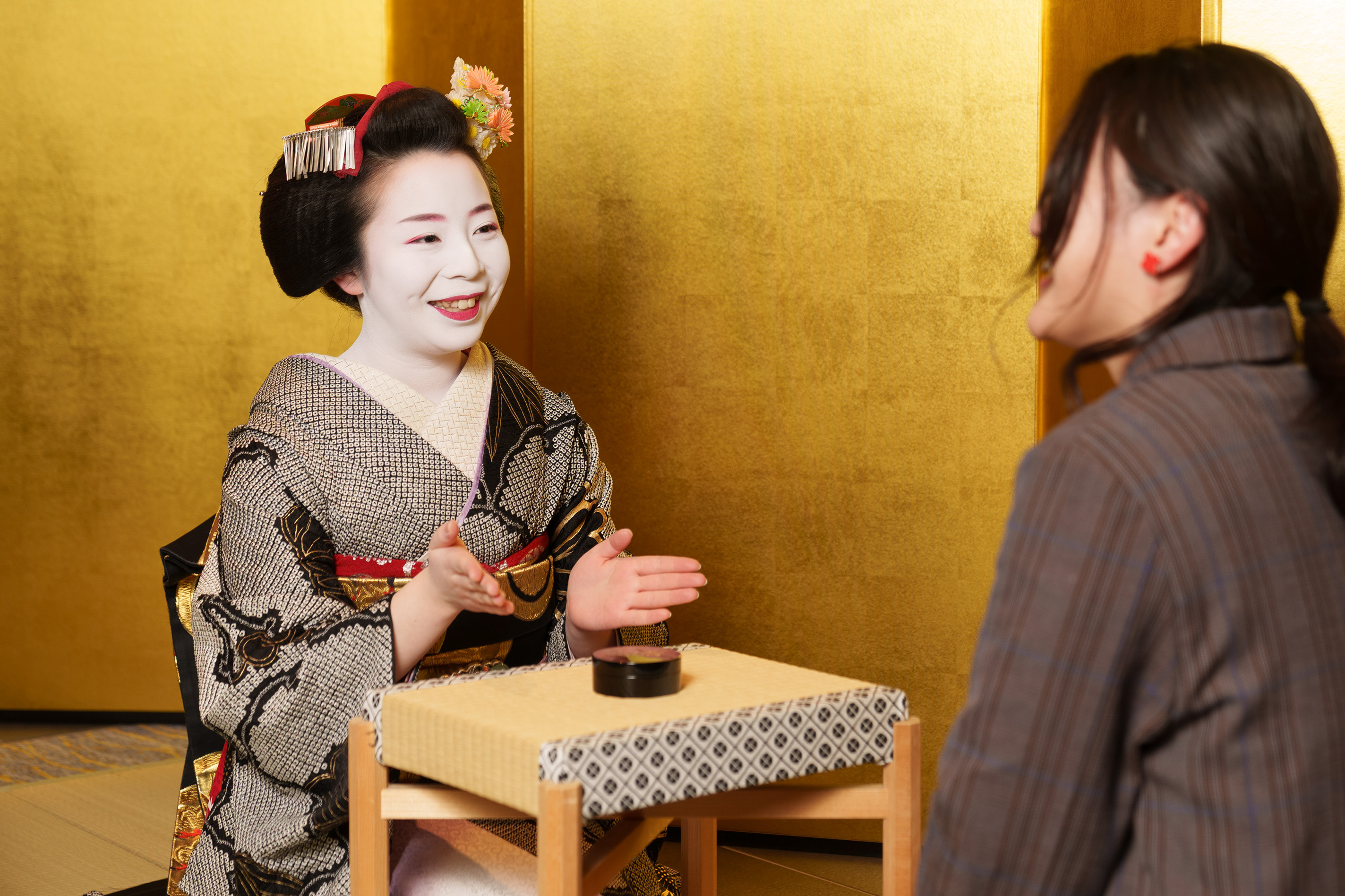 舞妓さんとの写真撮影は、お客様のカメラで撮影いたします。