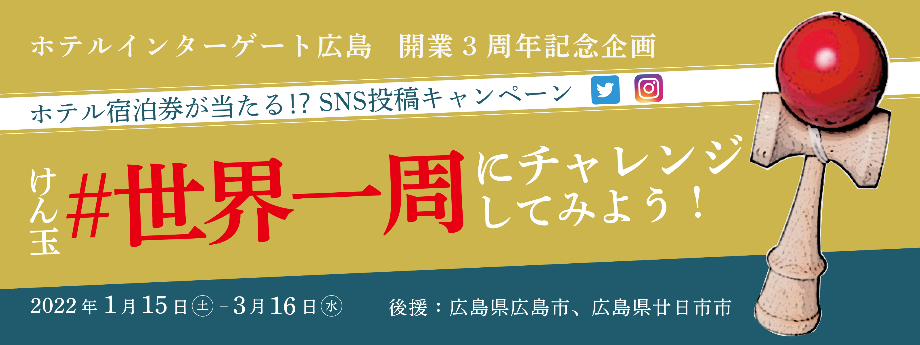 【ホテルインターゲート広島】広島県廿日市市“けん玉”発祥100周年 みんなで楽しくチャレンジ! けん玉で『世界一周』に挑戦!SNS投稿キャンペーン 開催