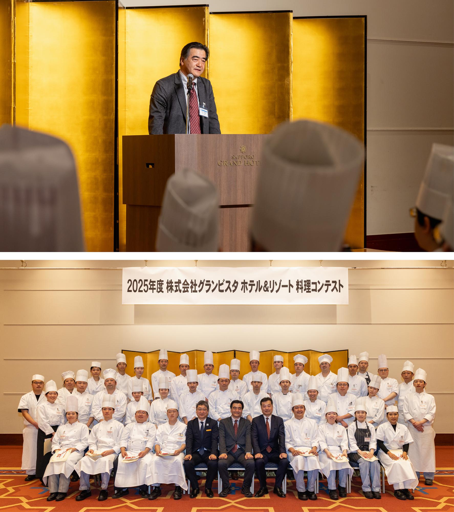 今回、レシピ審査を通過し、全国各地からエントリーした若手料理人46名。受賞した人も、賞を逃した人も、この経験から料理のプロとして新たなステージに立つことができました。表彰式の結びに、代表取締役社長の荒井幸雄より、若手料理人たちに「各賞を受賞したみなさんは、胸を張って。惜しくも賞を逃したみなさんも、料理への想いは間違いありません。これからも、自信を持って精進してください」と、ねぎらいの言葉をかけました。